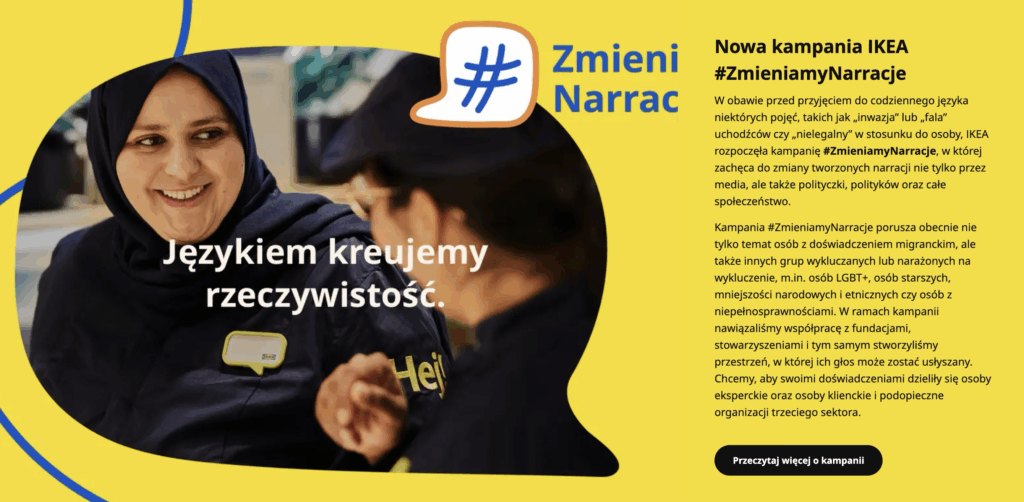 Przykładem takiego działania marki była kilka lat temu kampania IKEI #ZmieniamyNarracje, która koncentrowała się przede wszystkim na osobach uchodźczych walcząc ze stereotypem „nielegalnej inwazji” zalewającej Polskę.