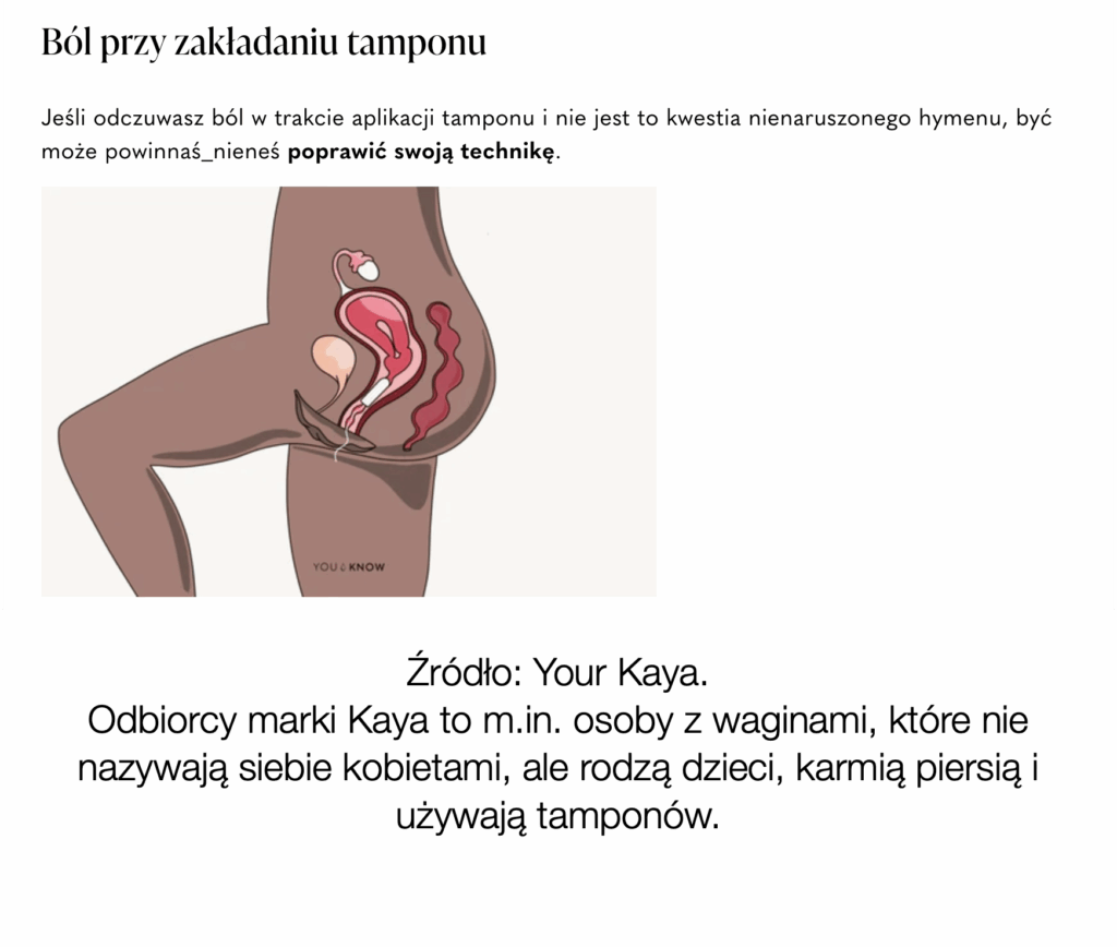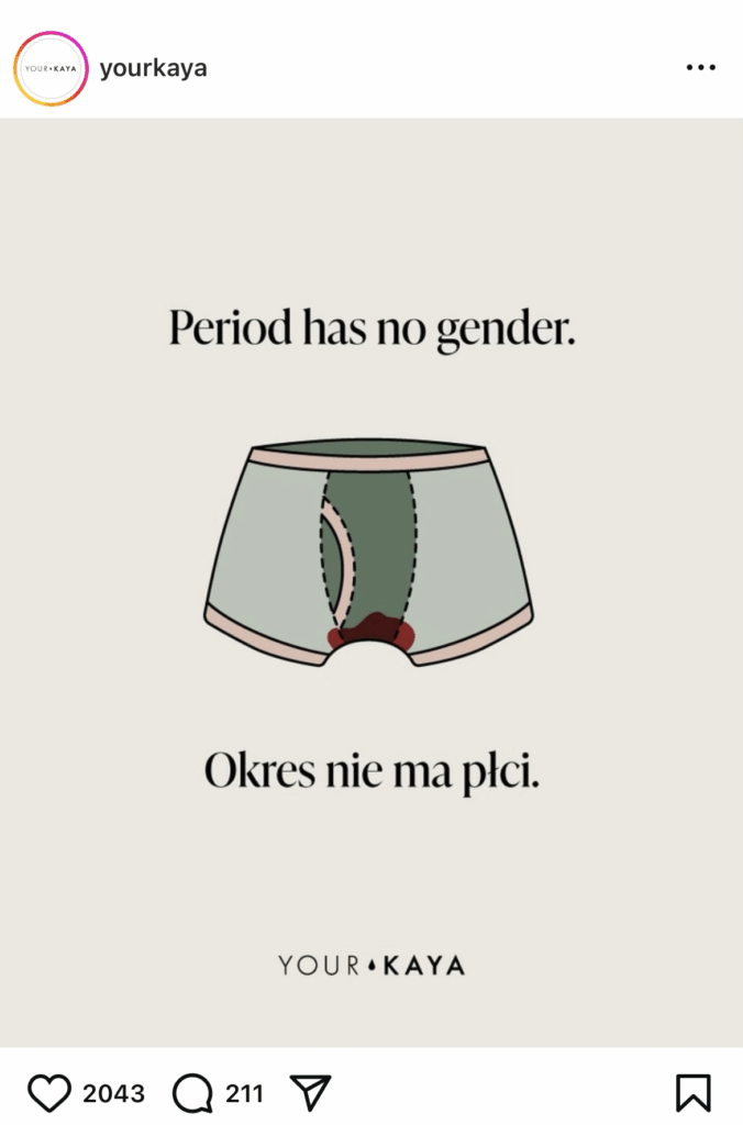 Nawet jeśli, to nie znaczy, że każda marka musi komunikować się jak Your Kaya – marka, która chce komunikować się także z osobami z waginami, które kobietami się nie czują, lub z osobami z penisami, które kobietami się jak najbardziej czują…