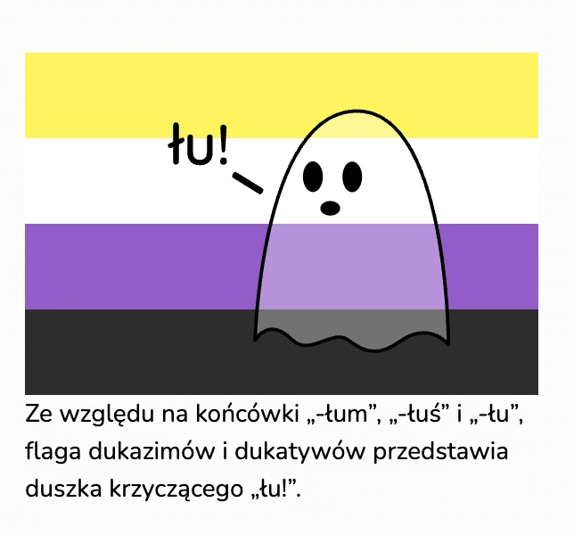 Dzięki aktywności środowisk niebinarnych i grup, które mówią o sobie „onu” pojawił się w języku polskim trzeci rodzaj gramatyczny w formie pojedynczej – neutralny (ono/jego), a wraz z nim całkiem nowe eksperymentalne formy gramatyczne, które weszły zarówno do języka mówionego, jak i pisanego. Obok iksatywów (zamiast żeńskiej czy męskiej, końcówka „x”), są to dukatywy i dukaizmy – koncówki:–łum, –łuś, i –łu, czy różne formy mnogie: np. „czy chce państwo usiąść?” (źródło: zaimki.pl)