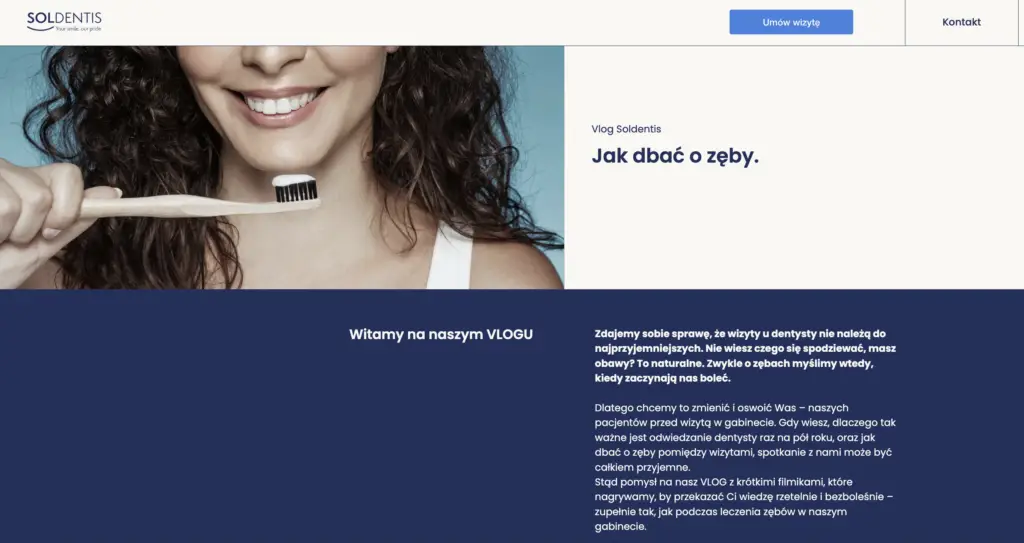 Opracowanie koncepcji Vloga oraz przygotowanie tekstów dla gabinetu dentystycznego Soldentis.